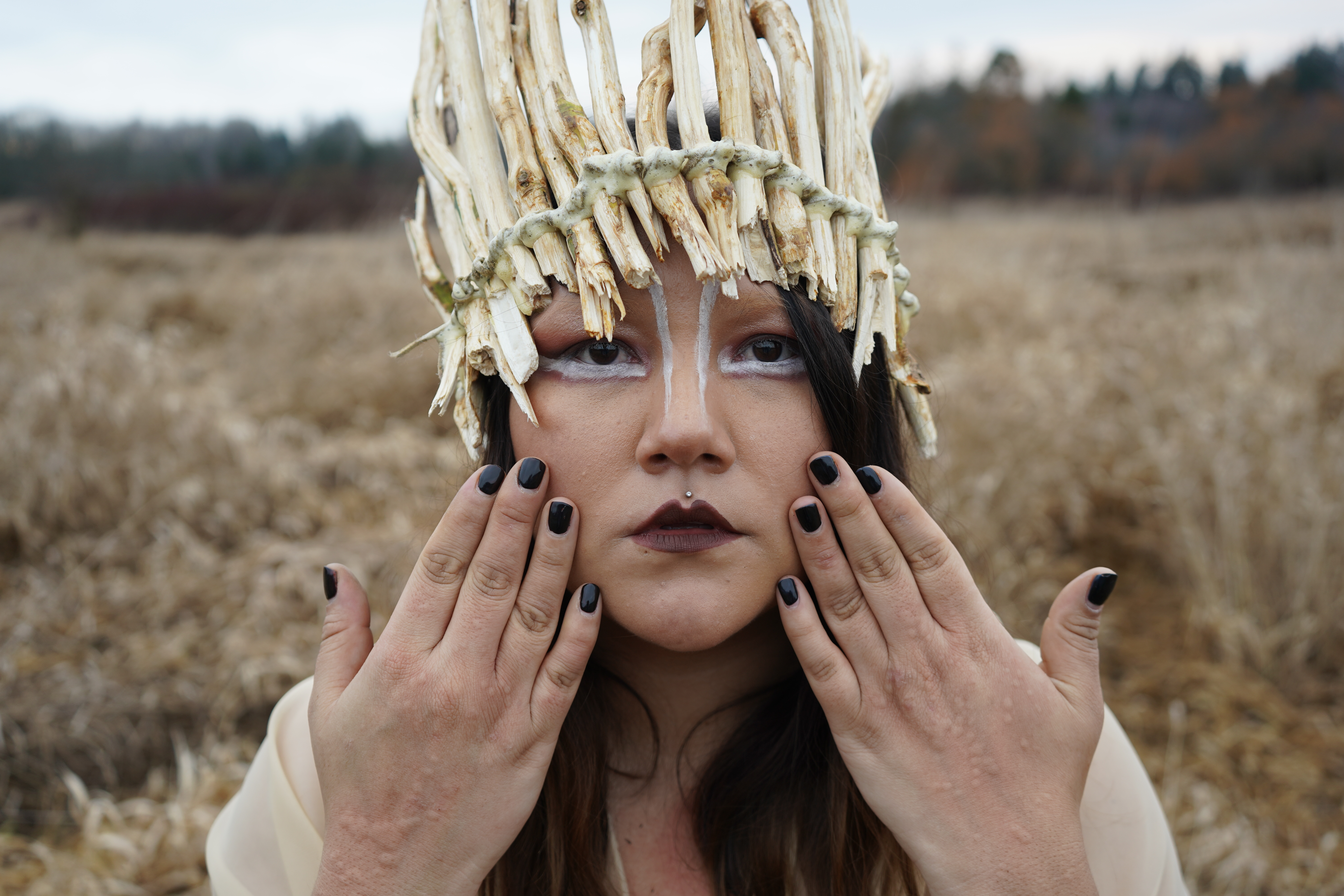 As a guest on these territories, Nanâskomitin. The generosity, gentleness and love brought by Nicole Preissl, through her teaching and sharing of ts’ex̱ts’íx̱ (a medicine that grows from this land), nitataminan. Têniki, Ya’Ya Heit for sharing the beautiful knowledge and teachings of Ha Ums, the crown I wear is what remained of the medicine. Both teachings have brought me so much healing and light, nitataminan.
