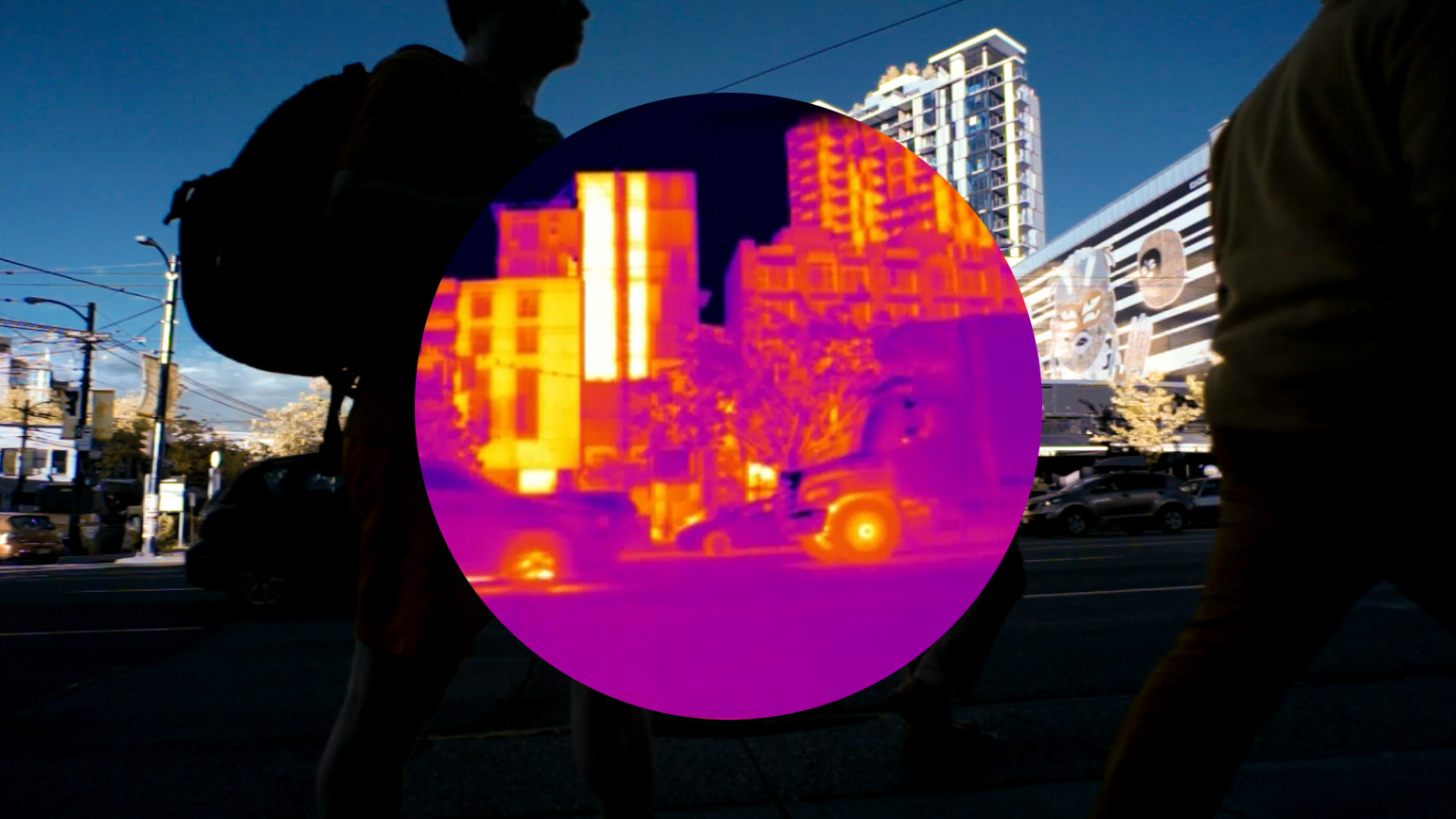 My video looks into the invisible spectra of near-infrared light energy, where plant life is particularly active; and the far-infrared thermal energy emitted by humans and human-made machines, highlighting the energies that create and interact in the urban environment.