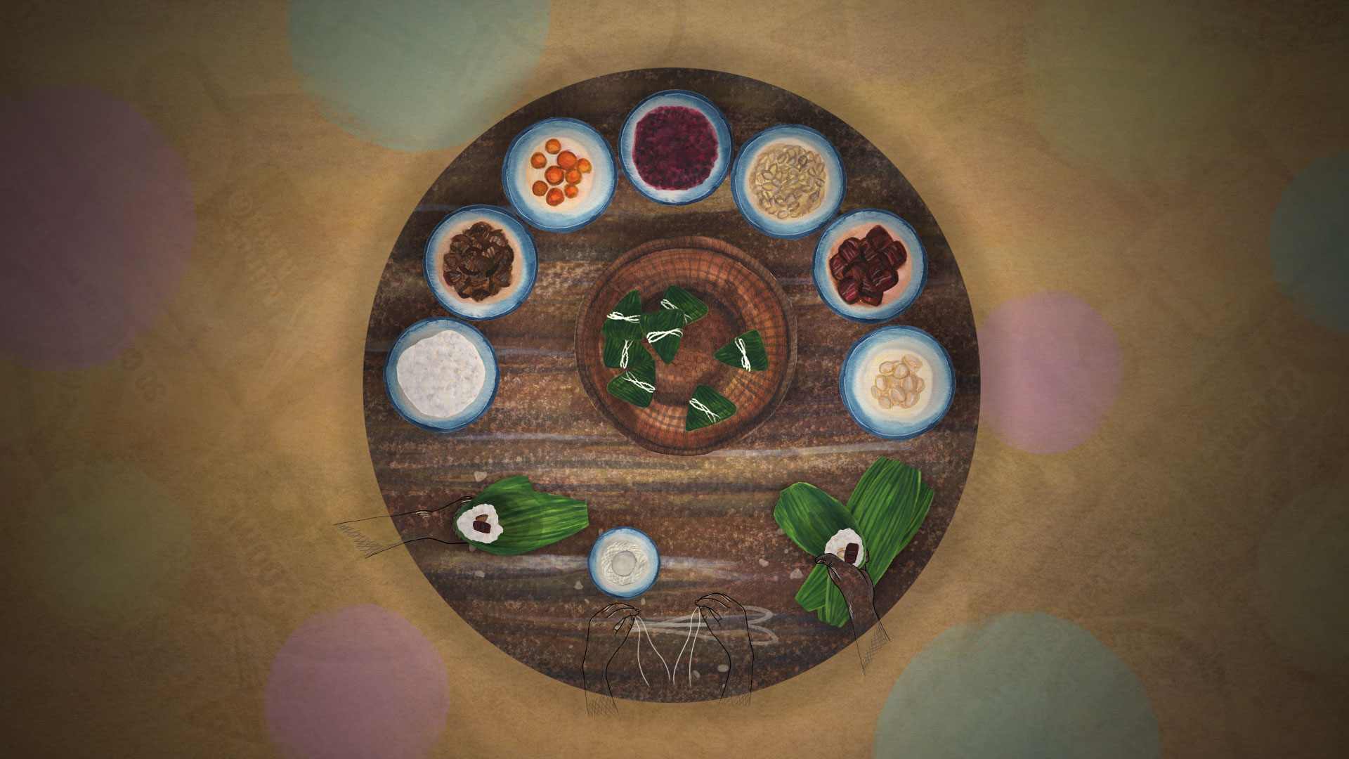 Around the Kitchen Table is a hand drawn animation short on the daily rituals performed around a childhood kitchen table. In Chinese culture, the circular shape symbolizes harmony and using that as the main visual base, hands fade in and out, executing the everyday tasks. With each bowl of congee eaten, each watermelon split, and each mooncake made; another day is marked, another season is completed, and another generation rises to continue the performance.